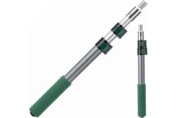 The 3 foot extension pole with flip lock lets users adjust length quickly for small cleaning tools or window wipers.