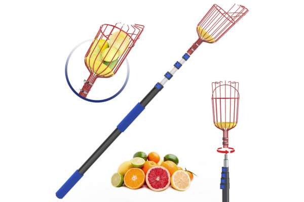The fruit picking extension pole with fruit basket head helps catch fruit gently during harvest. The metal basket holds apples, citrus, and other soft fruit without damage. It is suitable for orchards and distributors who need clean collection without bruising.