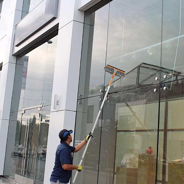 Suitable for indoor glass and first-floor exterior cleaning. Lightweight aluminum structure with stable telescopic control.